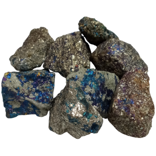 Spark joy and align your aura with the radiant energy of our Peacock Ore (Chalcopyrite) – Sold Per Kg. This vibrant metallic mineral shimmers in a stunning rainbow of blues, purples, and golds, earning its nickname “Peacock Ore.” It’s a powerful crystal for energy alignment, happiness, and spiritual transformation.