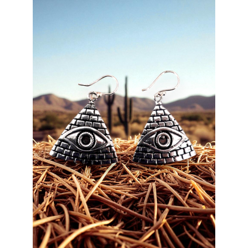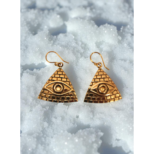 Make a bold statement with these Pyramid Eye Brass Earrings, available in both gold and silver finishes. Featuring a striking pyramid-shaped design with an all-seeing eye motif, these earrings symbolize strength, protection, and mystery.